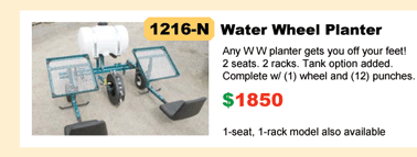 Agricultural equipment for fresh-market and wholesale production of vegetables, fruits and flowers. Also applications for landscaping and nurseries. Small or micro machinery for home gardens, homesteads and hobby farms. Products include Disk Bedders, Bed Reconditioners, Bed Shapers, Bedder-Layer Combos (Raised Bed Mulch Layers), Mulch Layers, Row Cover Layers, Drip Tape Applicators (SDI), Dry Wheel Punchers, Water Wheel Planters, Toolbar Cultivators (Seedbed Cultivators, Row Crop Cultivators), Raised Bed Cultivators, Mulch Lifters & Winders, Drip Tape Lifters & Winders, Rippers, Bed Lifters (Undercutters), Sub-Soilers, Chisel Plows.